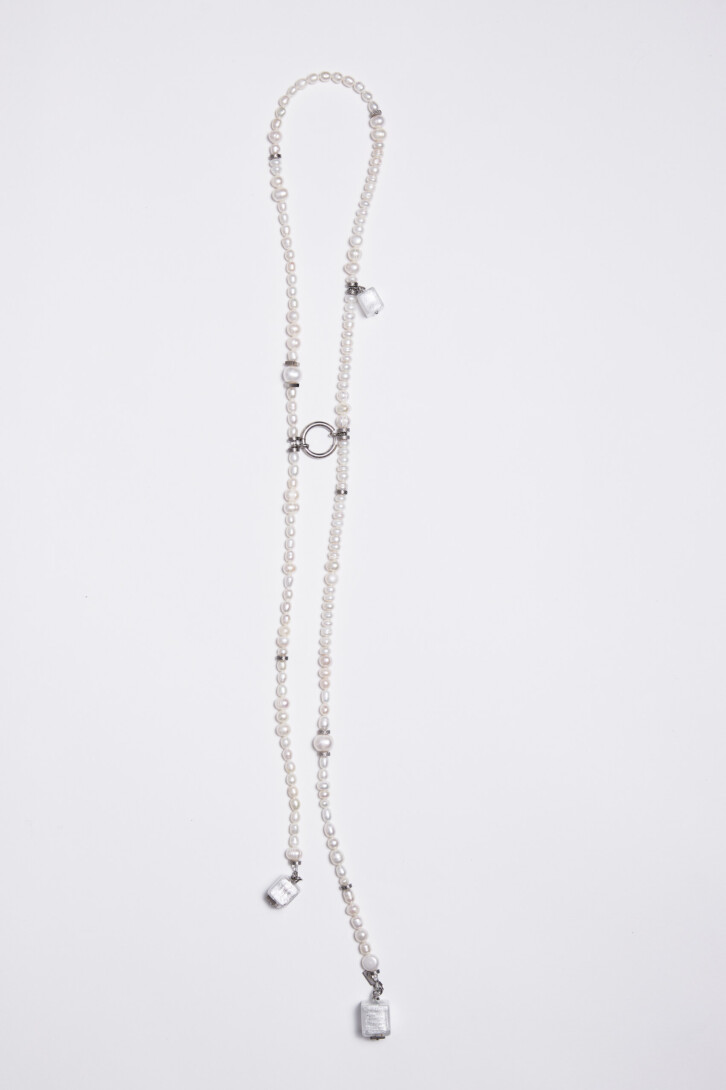 They include natural pearls and handmade Murano (Italian) glass puffs (figurines).