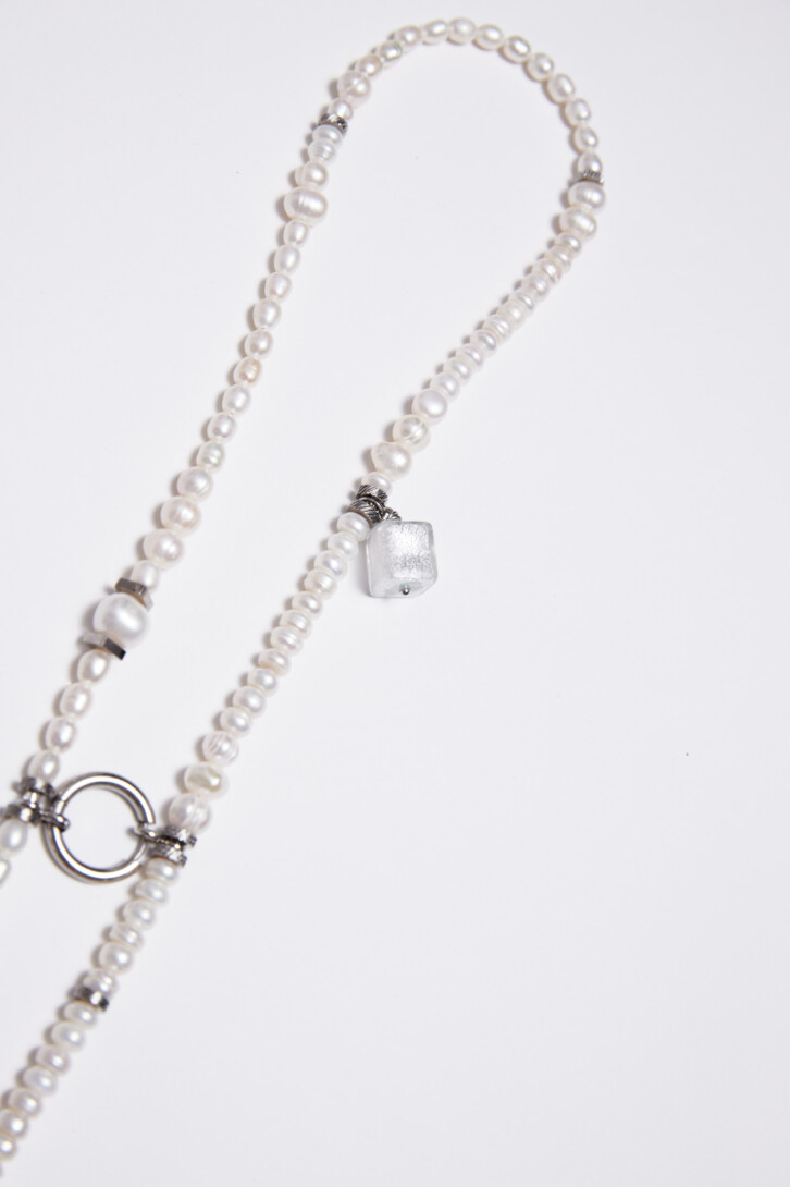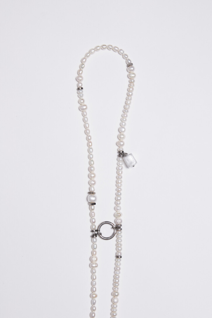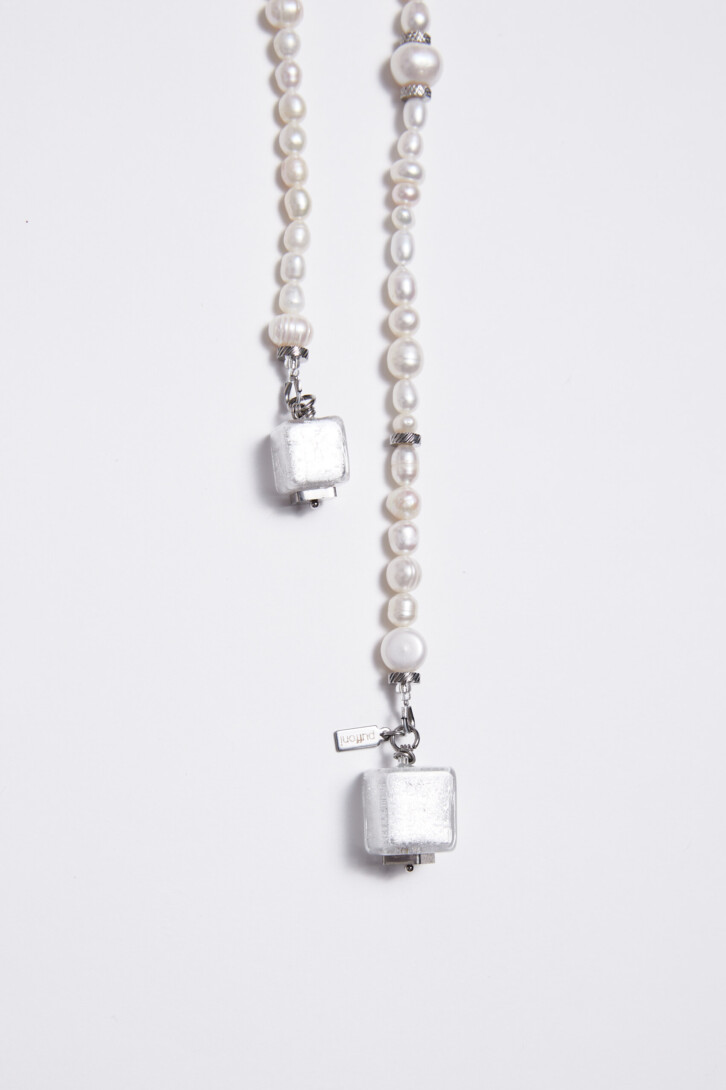 Natural white pearls. Silver leaf. Designer pouffes (beads) are made by hand of Italian (Murano) glass using the lampwork technique. Silver fittings are made of hypoallergenic jewelry alloy.