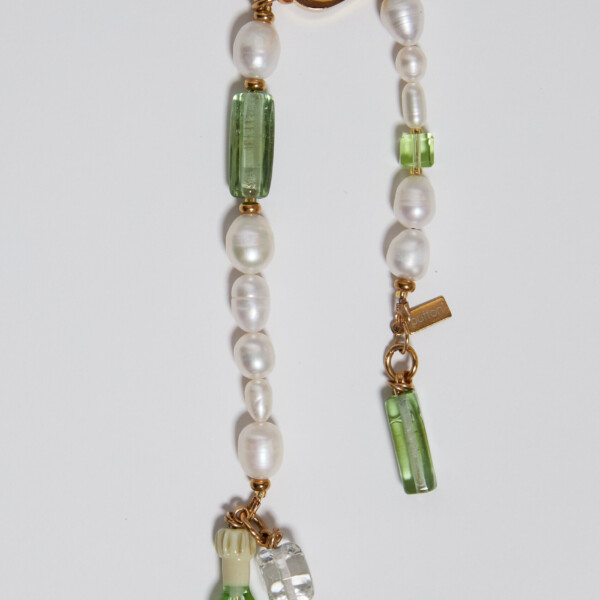They include natural pearls and handmade Murano (Italian) glass puffs (figurines).