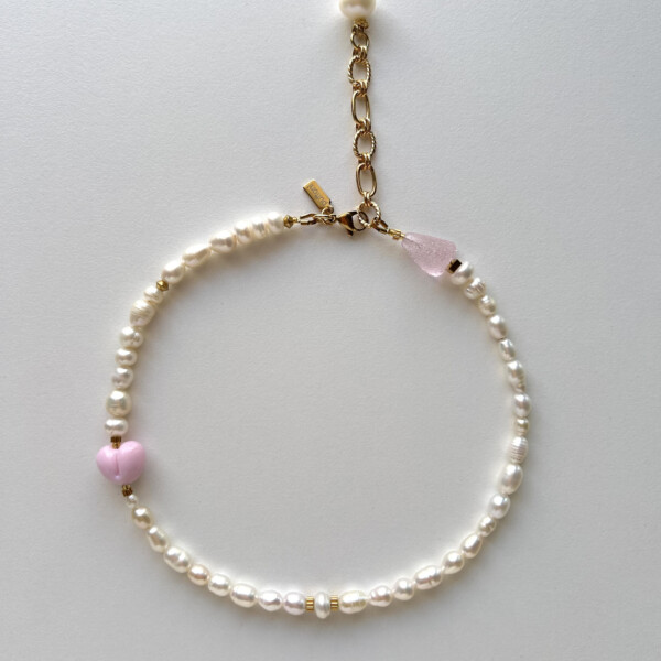 Натуральный белый жемчуг. Сердцe (бусина) выполнено вручную из итальянского (муранского) стекла в технике лэмпворк . Серебристая фурнитура из гипоаллергенного ювелирного сплава.