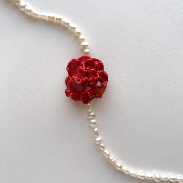 Натуральный белый жемчуг. Сердцe (бусина) выполнено вручную из итальянского (муранского) стекла в технике лэмпворк . Золотистая фурнитура из гипоаллергенного ювелирного сплава.